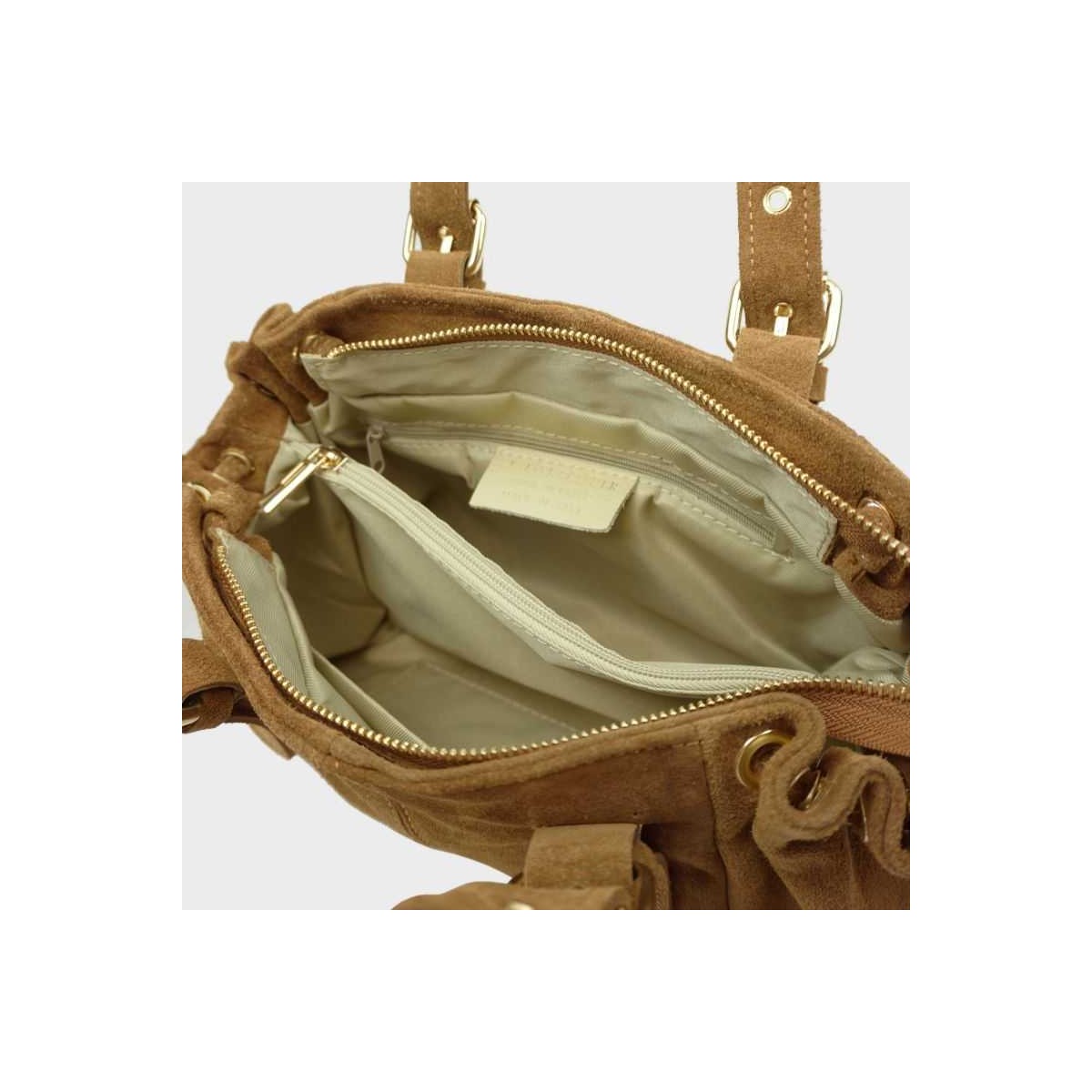 Nous vous recommandons de protéger votre sac en cuir suédine de l’humidité, de la chaleur, des liquides, crèmes, huiles, maquillages, et autres corps gras