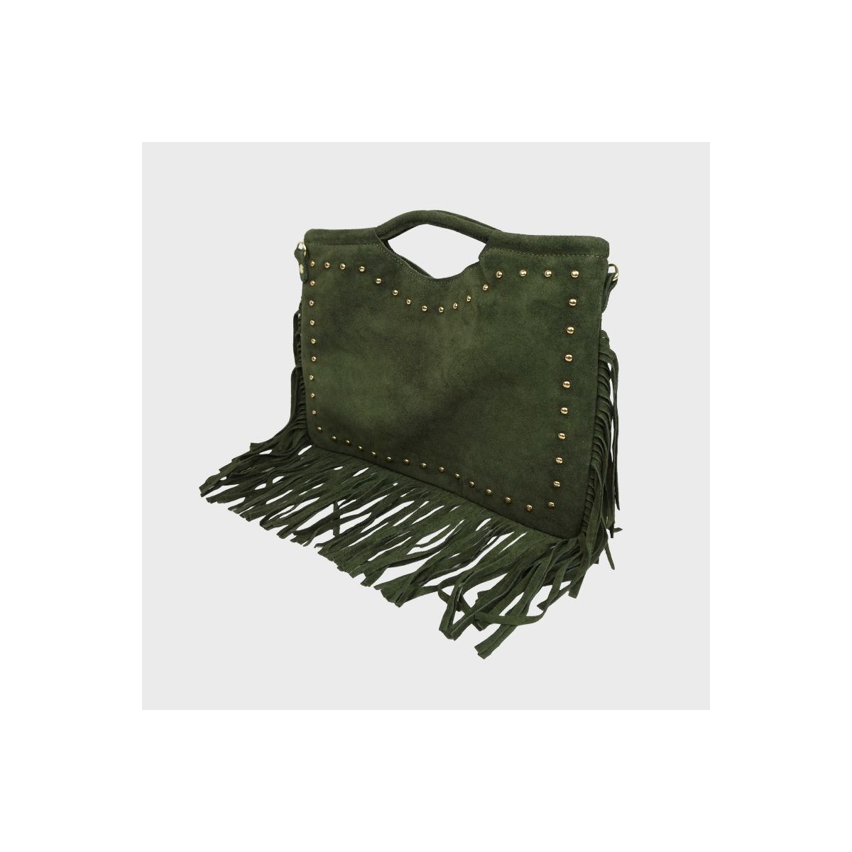 Anais - Sac à main clouté en croûte de cuir avec franges 47012