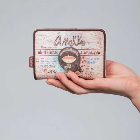Ce portefeuille fait partie de la collection Anekke Menire, un hommage aux collectifs de femmes indigènes d'Amazonie, qui se battent pour préserver leur environnement et leurs traditions. Le mot «menire» est le terme par lequel les femmes de la tribu Xikrin désignent les femmes indigènes de l'Amazonie.
