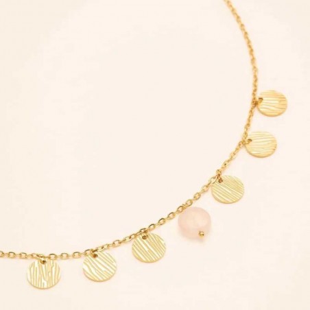 Collier en acier inoxydable composé de pampilles rondes zébrés et d'une pierre naturelle