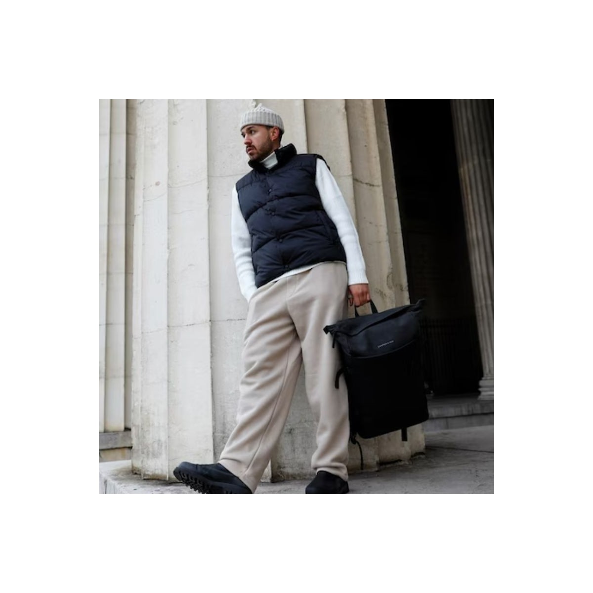 Fabriqué dans un matériel tech vegan, le sac est robuste, facile d'entretien et résistant à l'eau. Ainsi, vous pouvez l'amener partout sans risquer de l'abimer