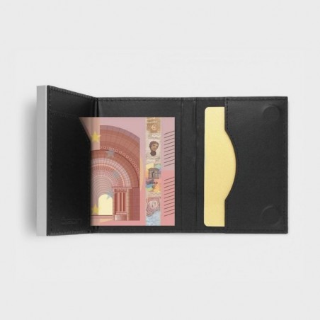 La conception du Cascade Wallet permet un accès instantané à vos cartes. Avec une simple pression du pouce, les cartes glissent en escalier. La poche intérieure en cuir peut accueillir des billets, des reçus et des cartes supplémentaires.