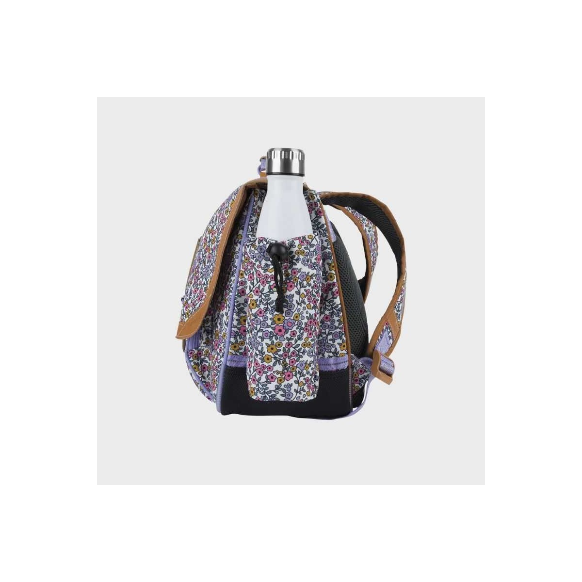 Nouveauté de la marque Tann's : La poche gourde amovible ! Fini les fuites sur les cahiers : elle se fixe à l'extérieur à l'aide de 2 sangles munies de 2 boutons-pression. Le cartable Ava sera adoré par les écolières avec son imprimé floral.
